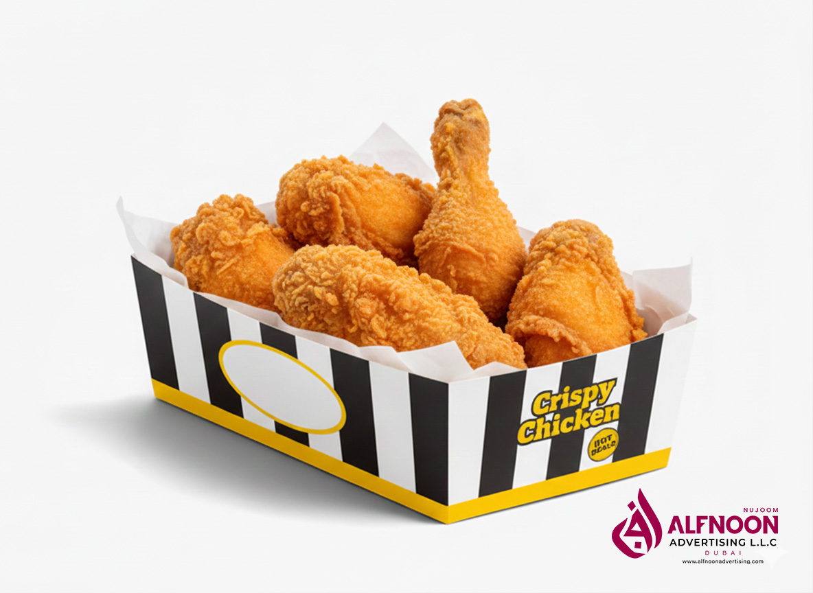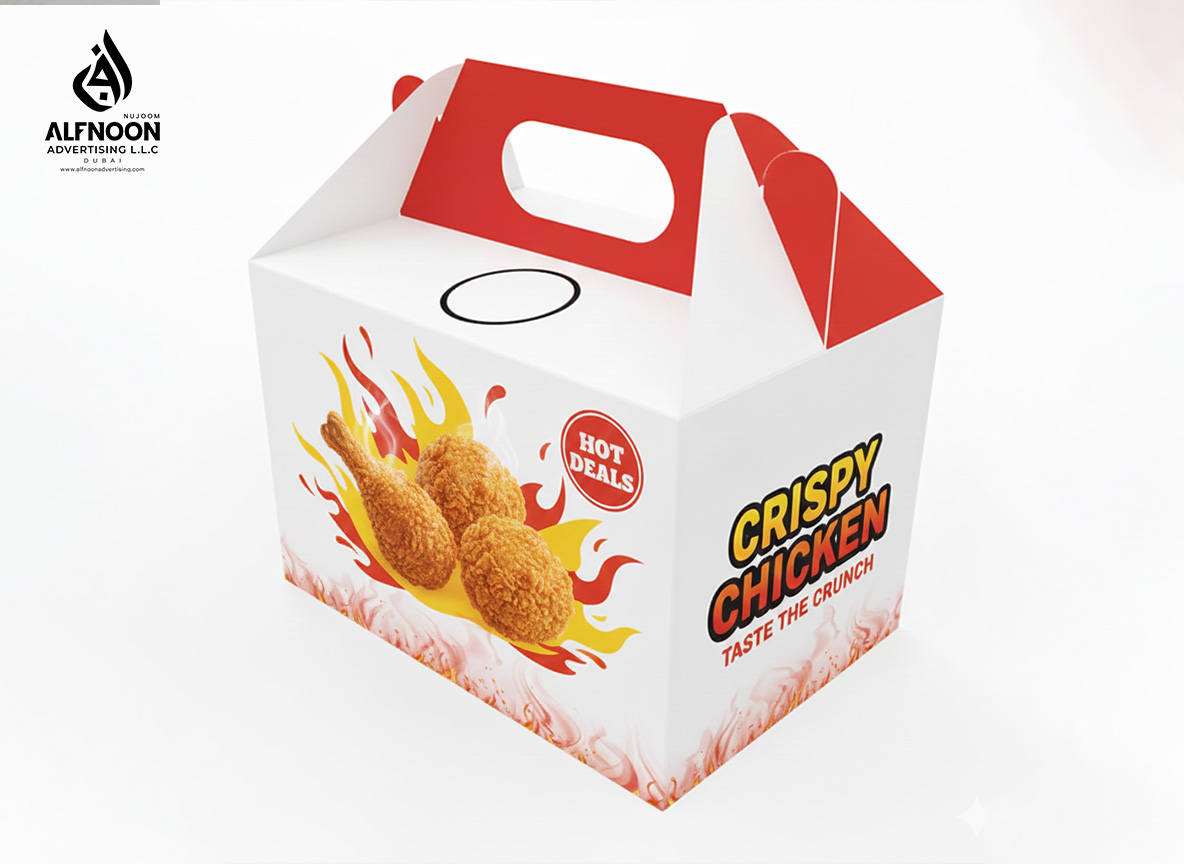 Looking for reliable Fried Chicken Box Printing in DubaiAlfnoonadvertising offers custom-printed food boxes tailored for restaurants, food trucks, and takeout businesses. These fried chicken boxes are grease-resistant, food-safe, and designed to carry your brand with bold colors and professional quality, making them perfect for hot food items where function and branding come together in one package.